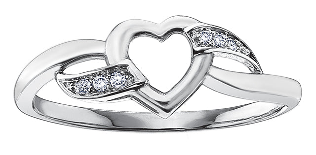 10k White Gold Heart Shaped Ring, 0.01TDW