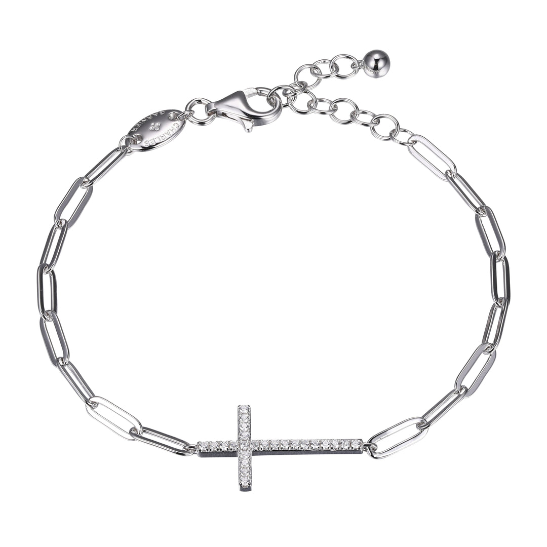 3MM Paperclip Bracelet with CZ Accented Cross