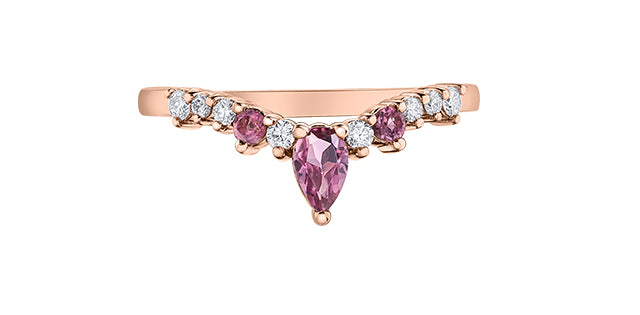 10K Pink Tourmaline & Diamond Chevron Ring