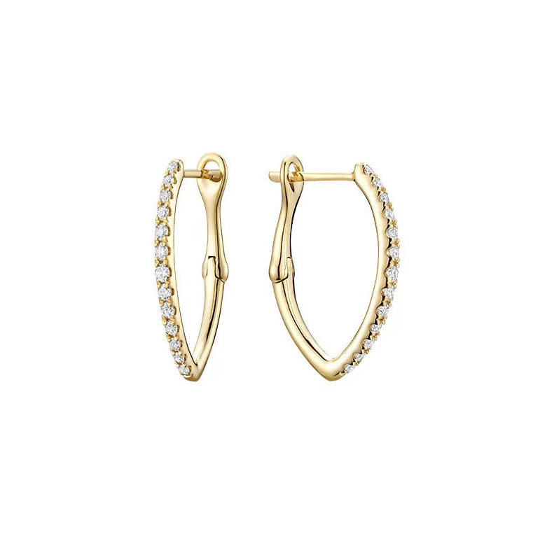 14k Gold V-Shaped Diamond Hoop Earrings. 0.33tdw