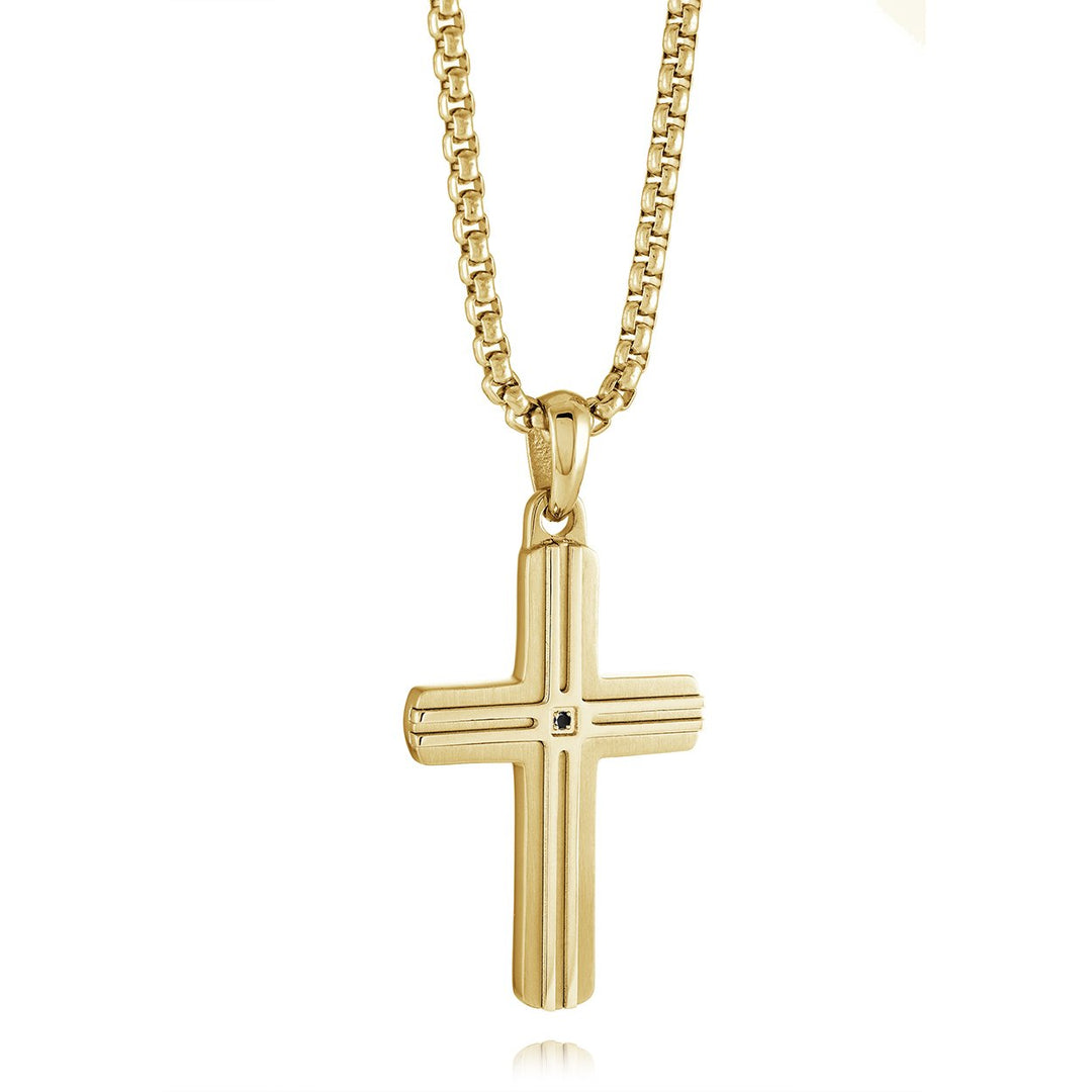Italgem Steel Gold IP Groove Pattern Cross Pendant