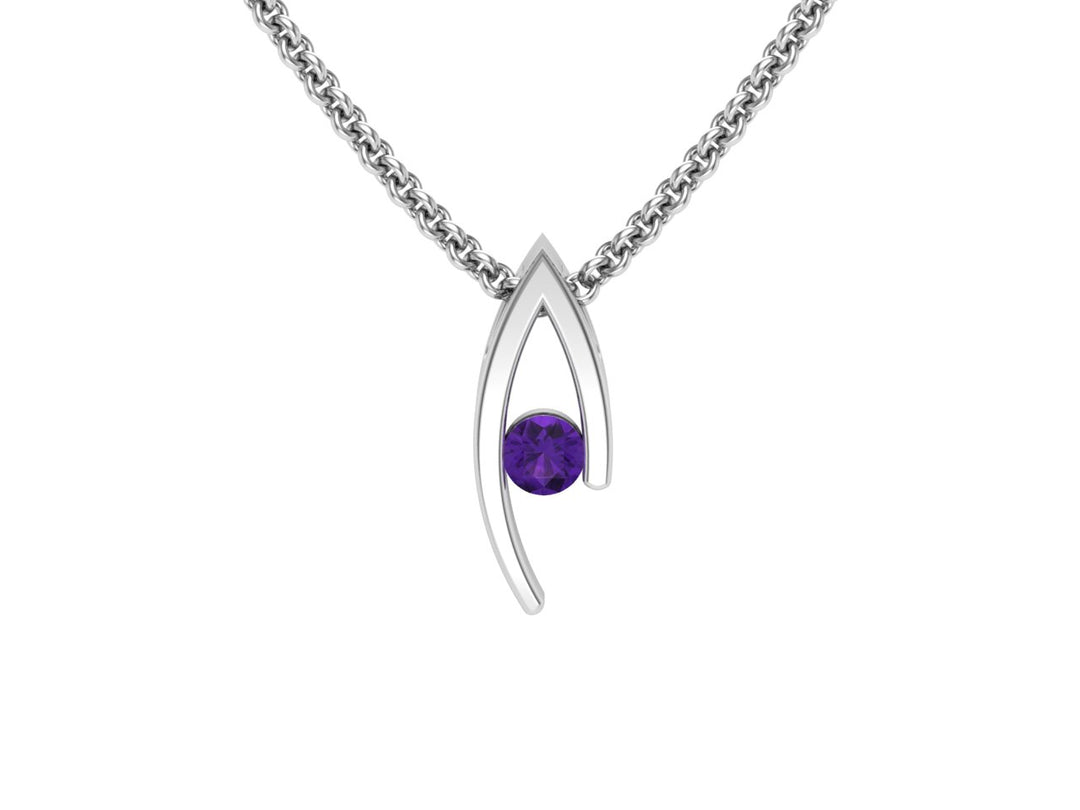 Double Curve Birthstone Pendant, February