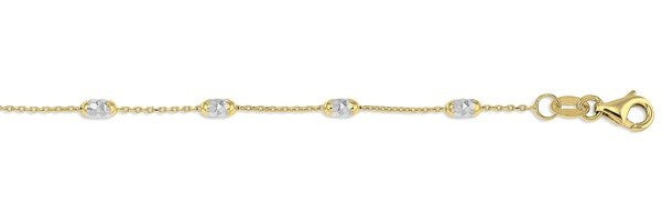 10K Two Tone Beaded Station Bracelet, 7.5"