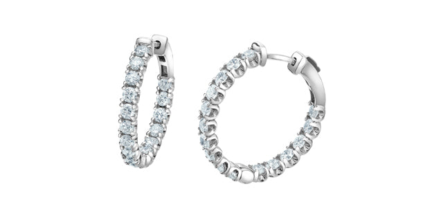 10k Gold Rectangular Diamond Hoop Earrings. 0.15tdw