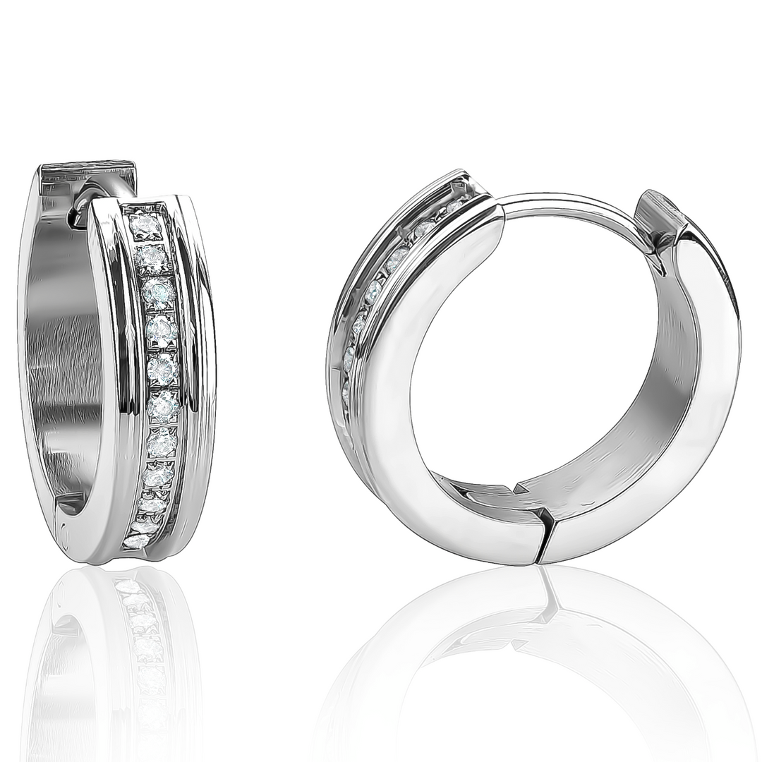 Italgem Stainless Steel CZ Huggie Earrings