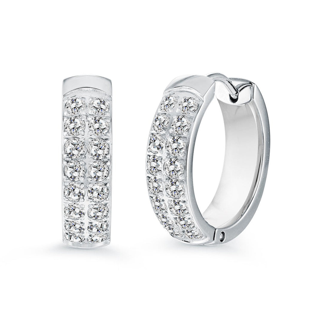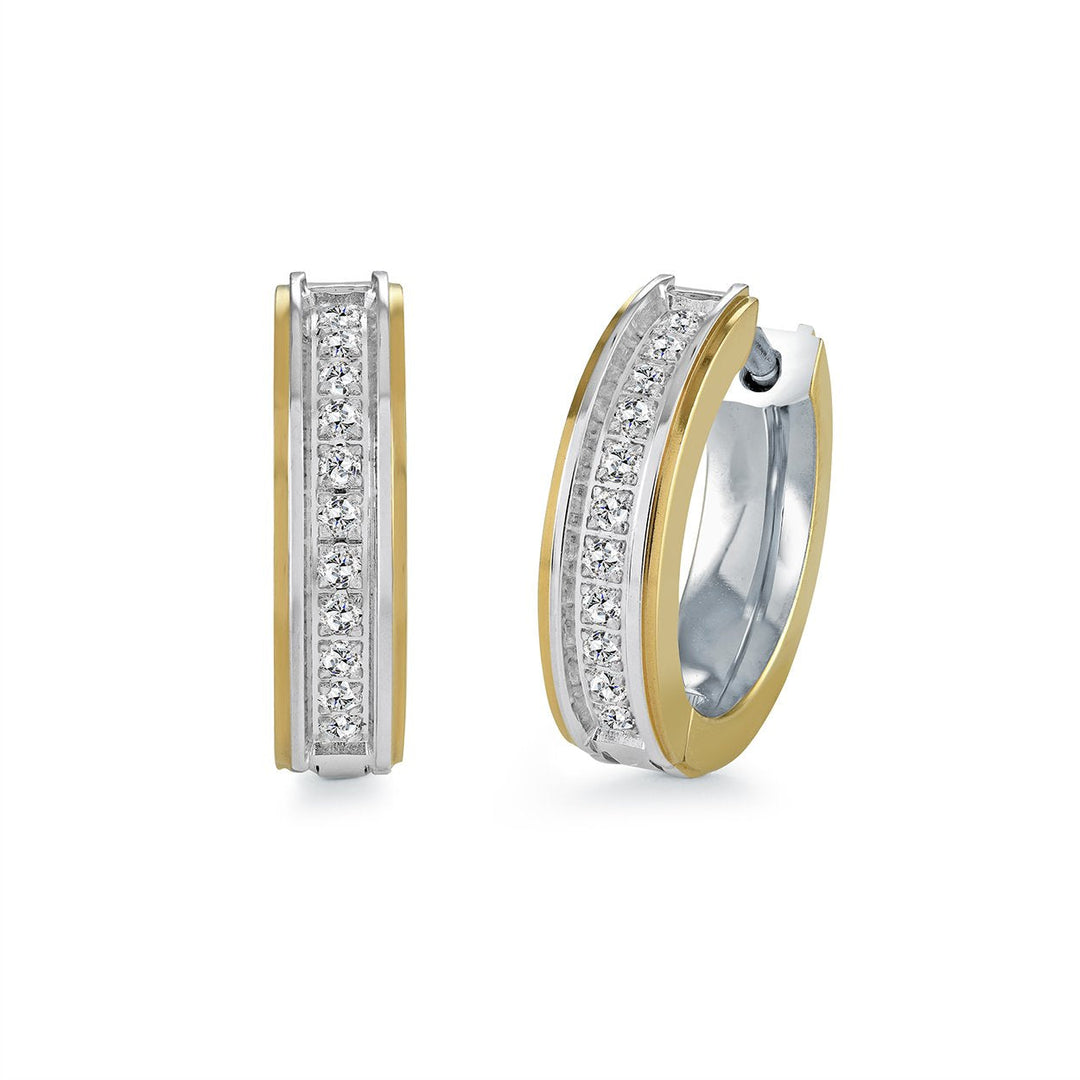 15MM Two Tone Channel Set CZ Huggie Earrings