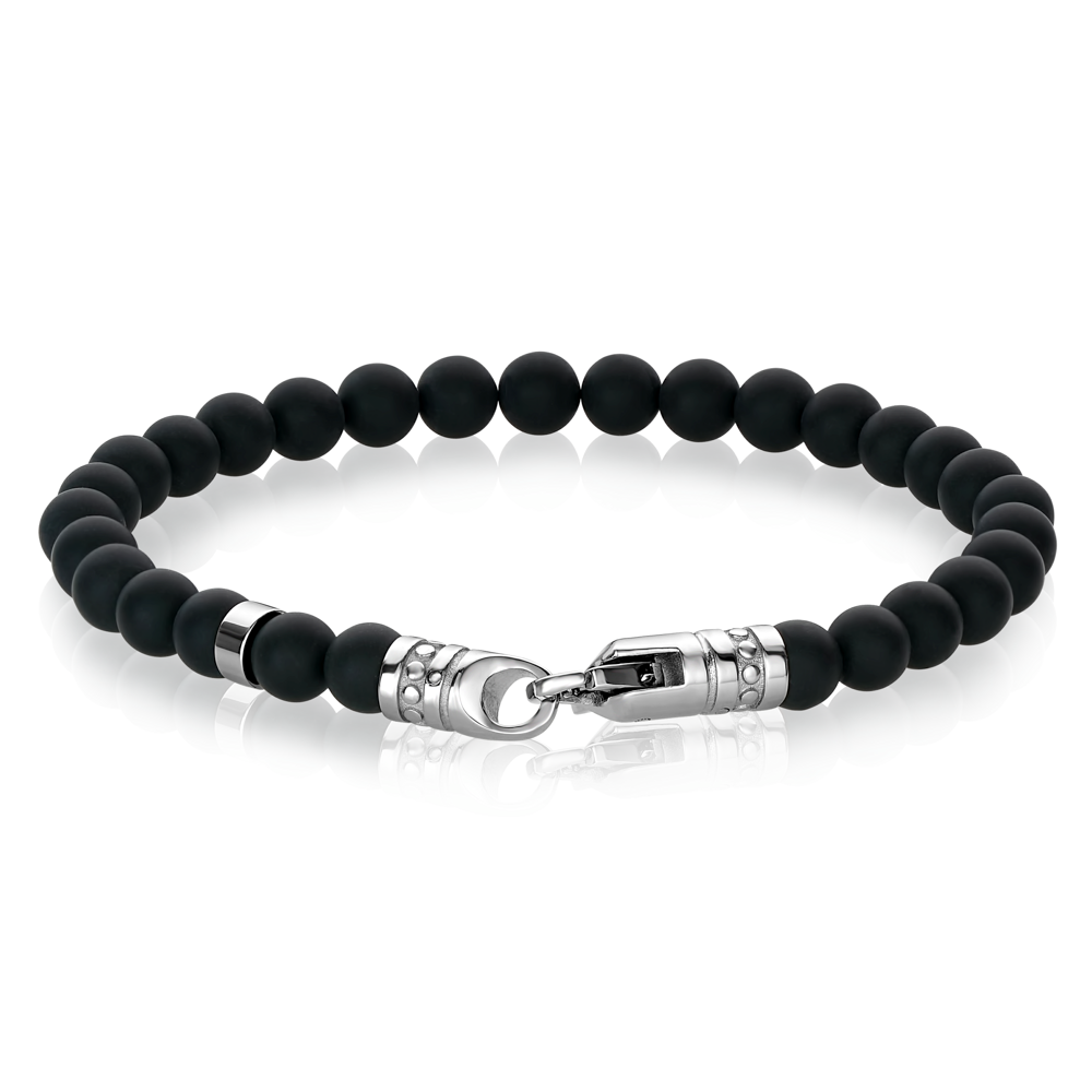 Italgem Steel Black Onyx 6mm Bead Bracelet
