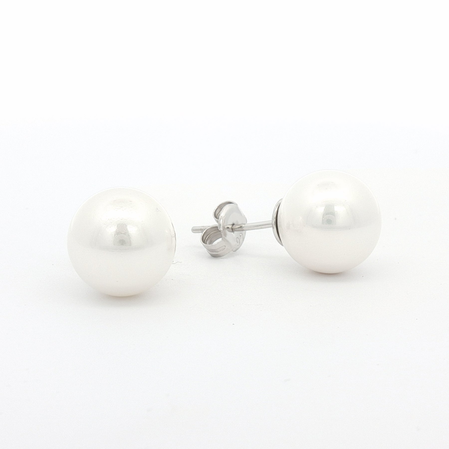 10.2mm emulated white pearl stud earrings set on sterling silver posts