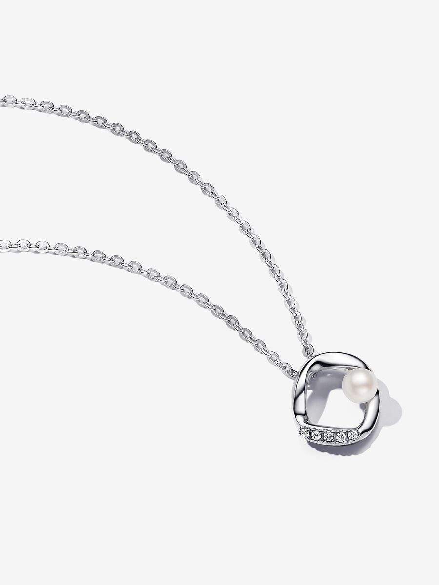 Pandora Essence Organically Shaped Pavé Circle & Treated Freshwater Cultured Pearl Collier Necklace, 17.7"