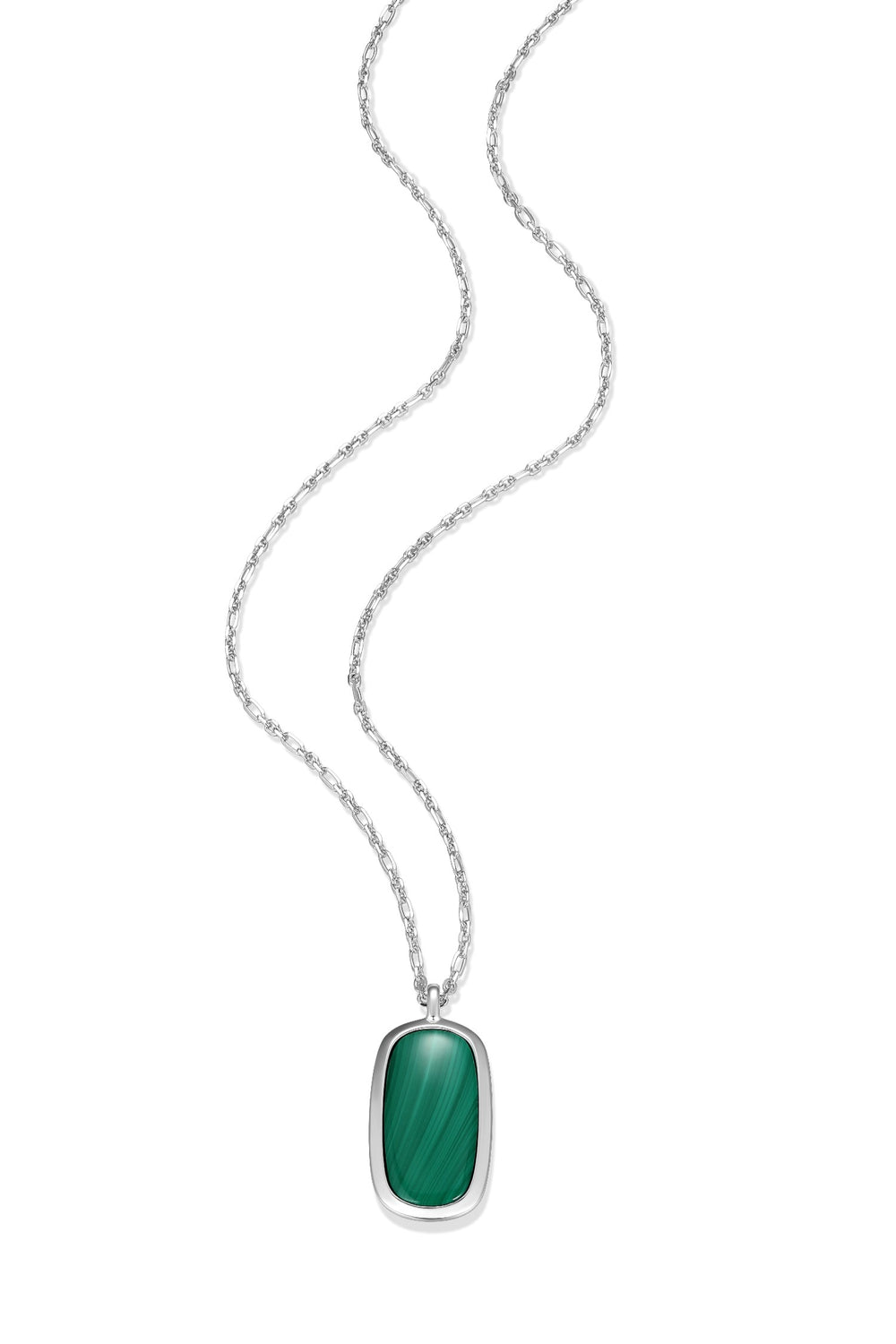 ELLE "Allure" Collection sterling silver gold plated pendant featuring a 20x10mm cushion cut malachite, includes a 17"+3" cable link chain