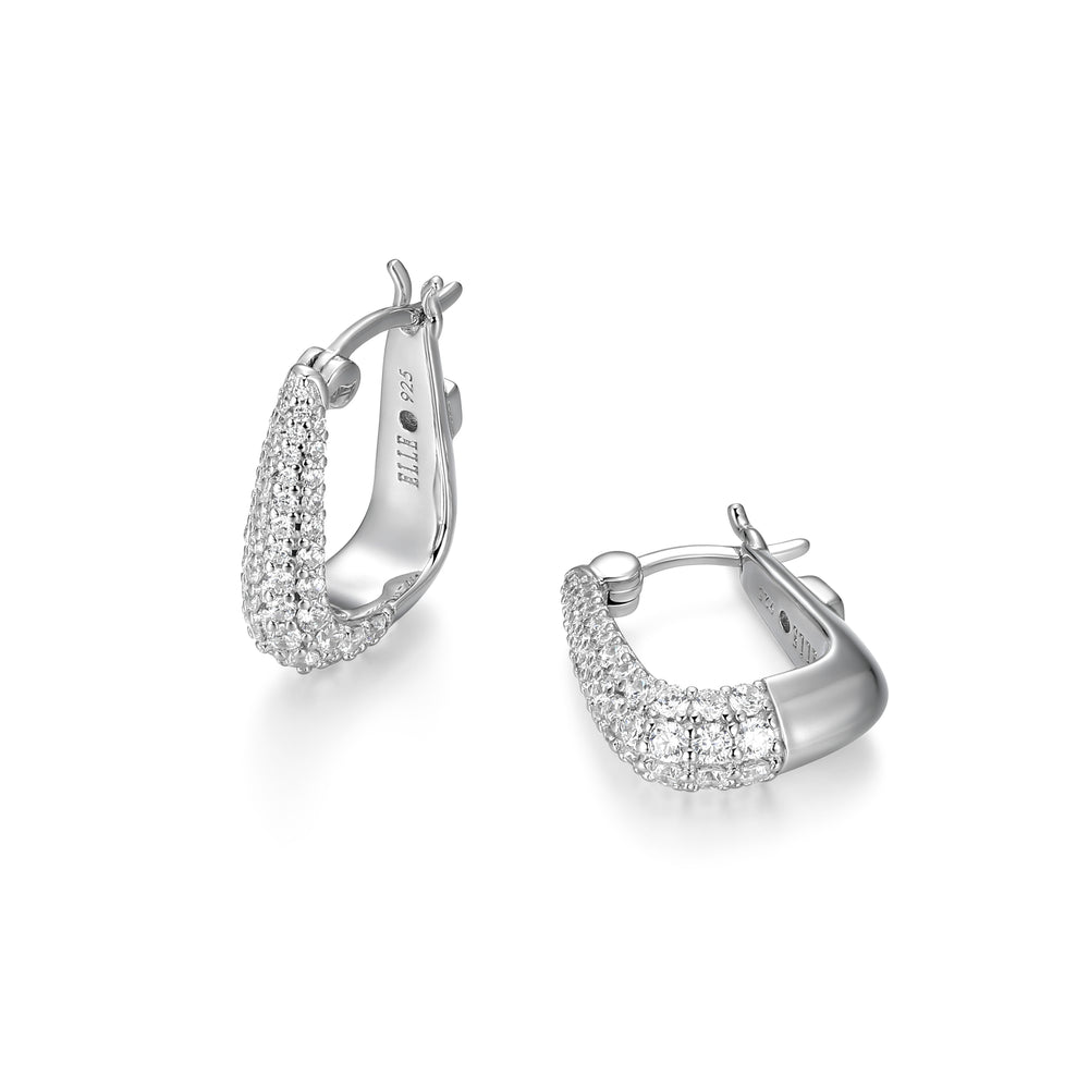 ELLE "Citadel" Rhodium-Plated Sterling Silver CZ Hoop Earrings