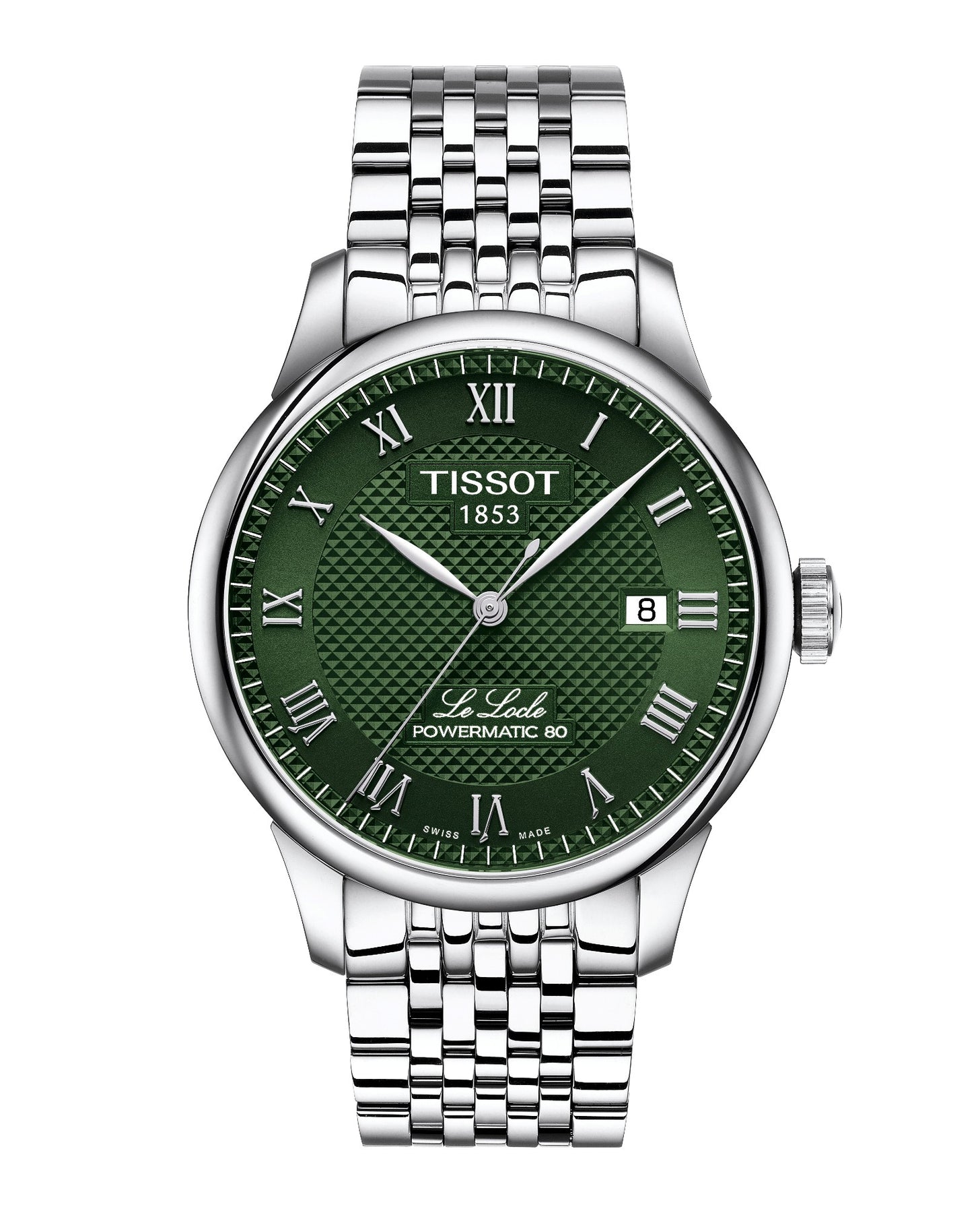 The Le Locle collection first debuted in 2003 to commemorate the 150th years of the brand. This timepiece is a piece of history, embodying the spirit of innovation that has defined Tissot for over a century. This model features a green dial and is equipped with interchangeable quick-release bracelets. All watches have the beautiful clous de Paris “guilloche” dial in the form of small pyramids a detail that really makes the difference. The interplay of polished and brushed finishes on the links creates a captivating visual rhythm, catching the light with every movement. This watch embodies the charm of Swiss heritage, with the name "Le Locle," inscribed in italics on the face, adds a sophisticated touch, inviting you to celebrate your roots. The latest model features cutting-edge Nivachron Spring Balance technology, which significantly mitigates the effects of magnetic fields while also being resistant to shocks, aging, and temperature variations.